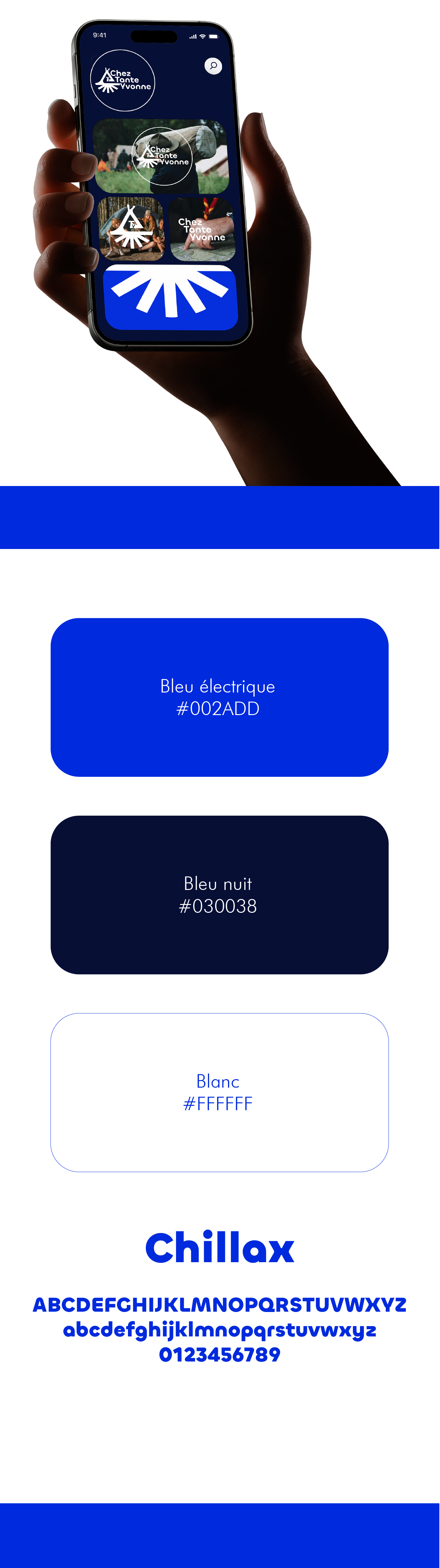 • Typographie Chillax — moderne, arrondie et accessible, pour refléter une image jeune et ouverte
